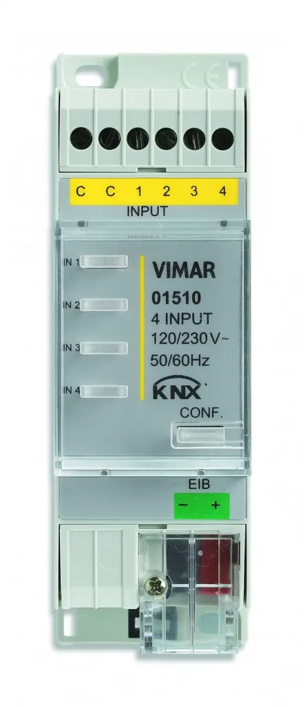 01510 Устройство с 4 цифровы-ми программируемыми входами Vimar Arke для нормально разомкнутых и замкнутых контактов, 120-230 В~, стандарт KNX, 2 модуля