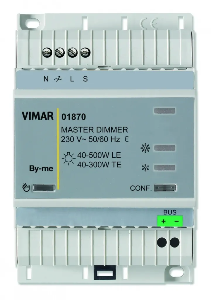 01870 Регулятор Vimar Arke MASTER, 40-500 Вт, 40-300 ВА, CFL 10-200 Вт, LED 3-200 Вт, 230 В~, 4 модуля