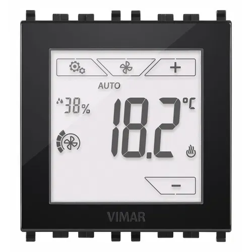 02951.BN Термостат Vimar Arke металл с сенсорным экраном с режимами работы ON/OFF, PWM и PID для 2- и 4-трубных систем, для управления фанкойлом с 3 скоростями и пропорциональным, 1 вход для подключения датчика NTC - 2 модуля