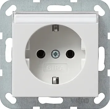 045227 Розетка с заземляющими контактами и контрольной лампой и полем для надписи белый матовый Gira