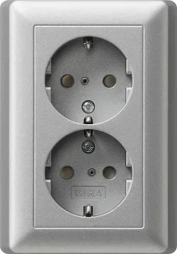 078326 Розетка двойная с заземляющими контактами в комплекте с рамкой Алюминий Gira