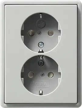 273526 Двойная розетка с заземляющими контактами для 1,5-местной коробки скрытого монтажа с защитой от детей Алюминий Gira