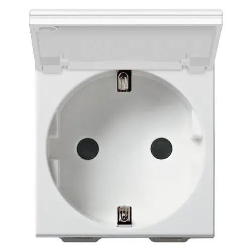 HD4141PW Axolute Розетка 2К+З с крышкой, 10/16 А 250 В с боковыми заземляющими контактами Schuko, с экранированными контактами, клеммы с автоматическим зажимом Bticino