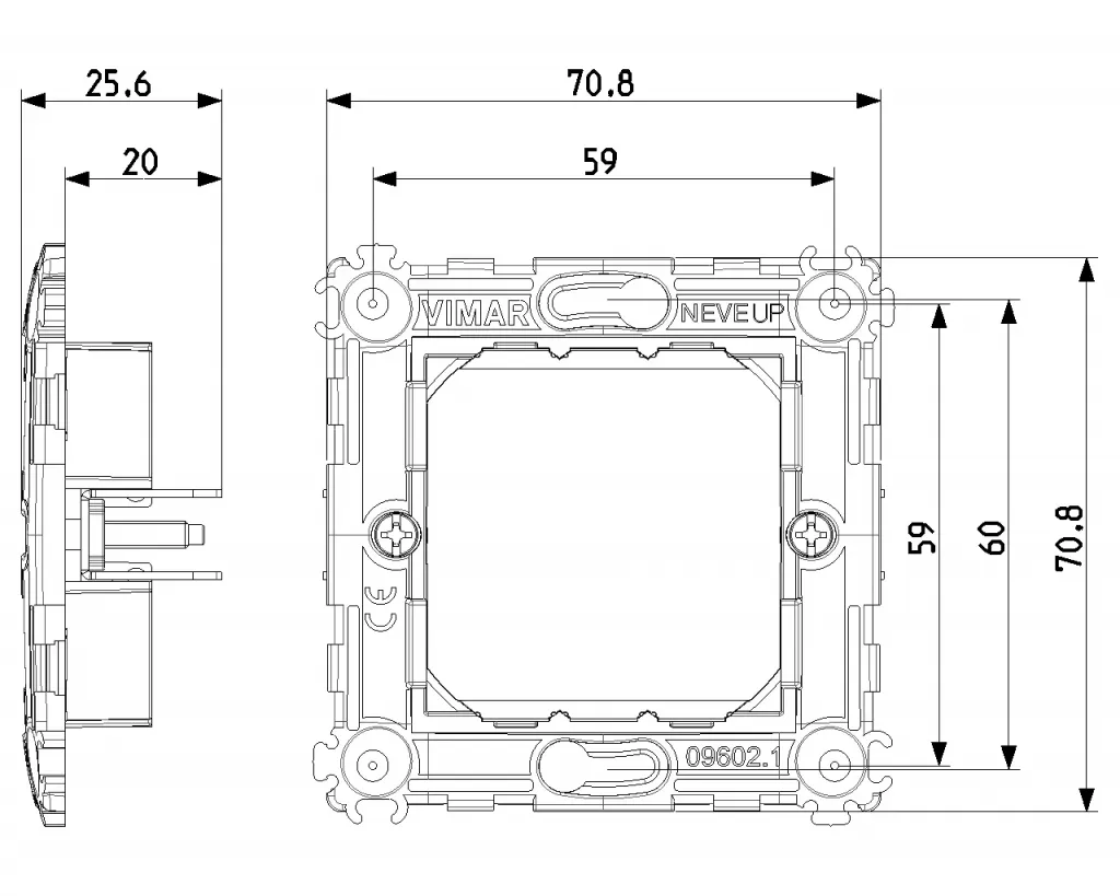 09603.1 Суппорт на 2 модуля без винтов, межосевое расстояние 71мм NEVE UP Vimar
