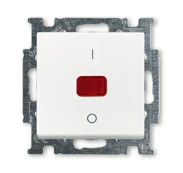1020-0-0093 (1020/2 UCK-96-), Механизм 1-клавишного, 2-полюсного выключателя, с клавишей, с линзой, с неоновой лампой, с маркировкой I/O, 20 А / 250 В, серия Basi 55, цвет chalet-white, ABB