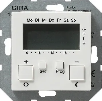 118627 Радиотермостат с часами белый матовый Gira