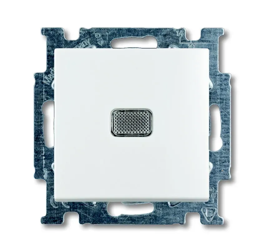 1413-0-1101 (2026 UCN/KL-96), Механизм 1-клавишной, 1-полюсной кнопки (нормально-открытый контакт), с N-клеммой, с клавишей, с полем для надписи, с символом ЗВОНОК, серия Basic 55, цвет chalet-white, ABB