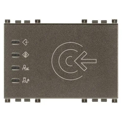 19457.M Устройство чтения карттранспондеров Vimar Arke металл для установки вне помещения, стандарт KNX, 2 релейных нормально разомкну- тых выхода 4 A 24 В~, 2 входа, 12-24 В~ 50/60 Гц и 12-24 В пост. тока (SELV) - 3 модуля