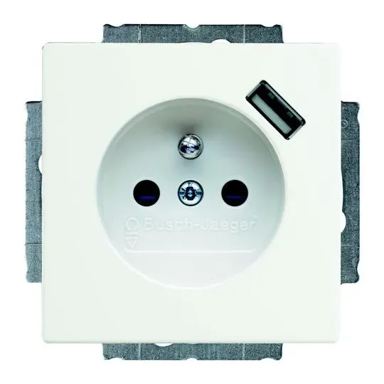 2011-0-6192 (20 EUCBUSB-92-507), Розетка Schuko с устройством зарядным USB, 20 EUCBUSB-92-500, Basic55 слоновая кость, 16А, 700 мА, электронная защита от перегрузки КЗ, безвинтовые клеммы, защитные шторки,, ABB