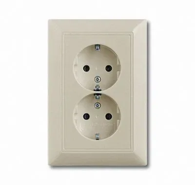 2021-0-0380 (20-02 EUJKS-93), Розетка SCHUKO 16А 250В, двойная, с защитными шторками, серия Basic 55, цвет шампань, ABB