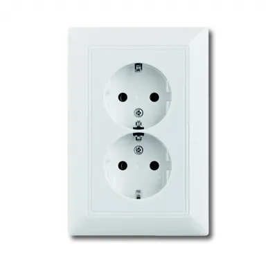 2014-0-1478 (20-02 EUJ-96-5), Розетка SCHUKO 16А 250В, двойная, серия Basic 55, цвет chalet-white, ABB