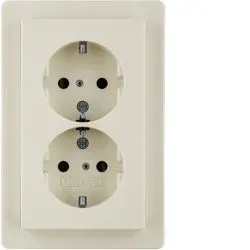 47296082 Двойная штепсельная розетка SCHUKO с накладкой, Q.х, цвет: белый, с эффектом бархата Berker
