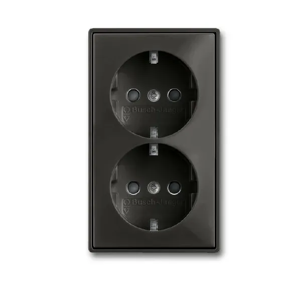2021-0-0381 (20-02 EUJKS-95), Розетка SCHUKO 16А 250В, двойная, с защитными шторками, серия Basic 55, цвет chateau-black, ABB