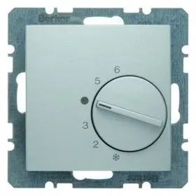 20261404 Регулятор температуры помещения с переключающим контактом и центральной панелью цвет: алюминий, матовый B.1/B.7 Glas Berker