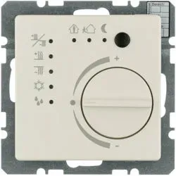 20266082 Регулятор температуры помещения с переключающим контактом и центральной панелью, Q.х, цвет: белый, с эффектом бархата Berker