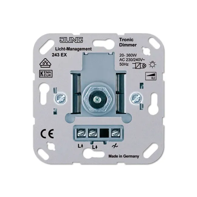 243EX Светорегулятор поворотно-нажимной 20-360 Вт для л/н,и электрон трансформаторов Jung