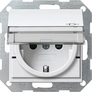276303 Вставка розетки с крышкой, с защитой от детей и контрольным светодиодным индикатором белый глянец Gira