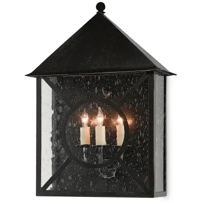 Бра в виде фонаря с черным каркасом и текстурным стеклом Street Lighting