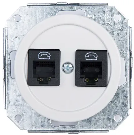 31706172 Телефонная розетка, 6 контактов 2-х местная, белая керамика Fontini