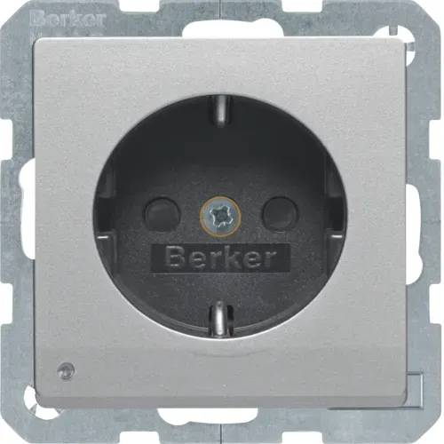 41106084 Штепсельная розетка SCHUKO с контрольной лампой, полем для надписи, Q.1/Q.3, цвет: алюминиевый, с эффектом бархата Berker