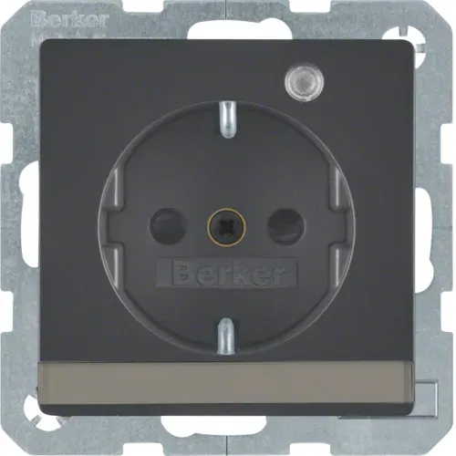 41106086 Штепсельная розетка SCHUKO с контрольной лампой, полем для надписи, Q.1/Q.3, цвет: антрацитовый, бархат Berker