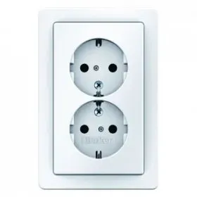 47548982 Двойная штепсельная розетка SCHUKO, цельная цвет: белый, с блеском S.1 Berker