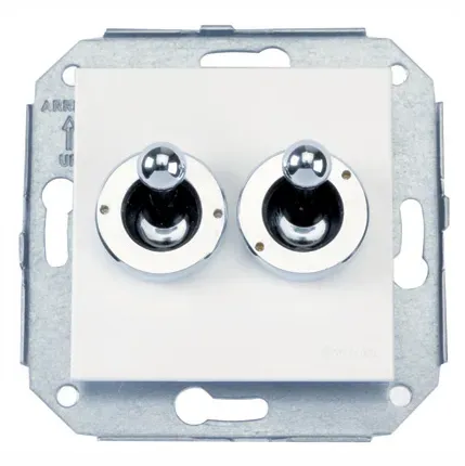 67302262 Выключатель с 2-х мест, двухклавишный, хром/белый Fontini
