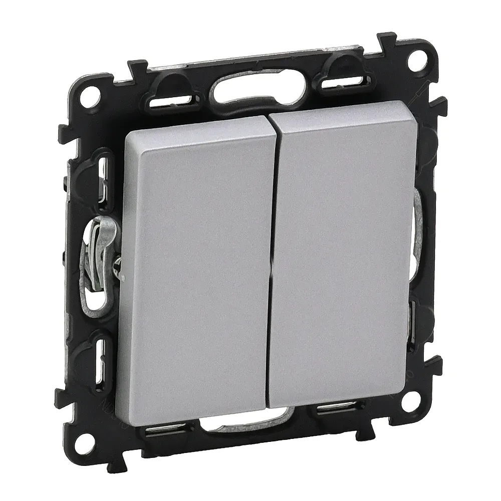 752605 Valena LIFE. Выключатель двухклавишный 10А 250В с лицевой панелью. Безвинтовые зажимы. Алюминий Legrand