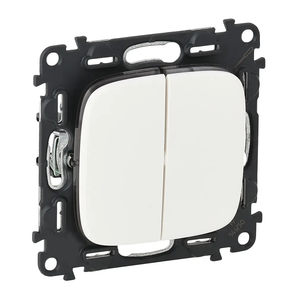 752708 Valena ALLURE. Переключатель двухклавишный 10А 250В с лицевой панелью. Безвинтовые зажимы. Белый Legrand
