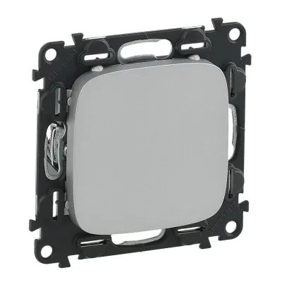 752926 Valena ALLURE. Переключатель 10АХ 250В с подсветкой,с лицевой панелью. Безвинтовые зажимы. Алюминий Legrand