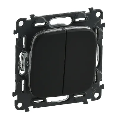 752915 Valena ALLURE. Выключатель двухклавишный 10А 250В с лицевой панелью. Безвинтовые зажимы. Антрацит Legrand
