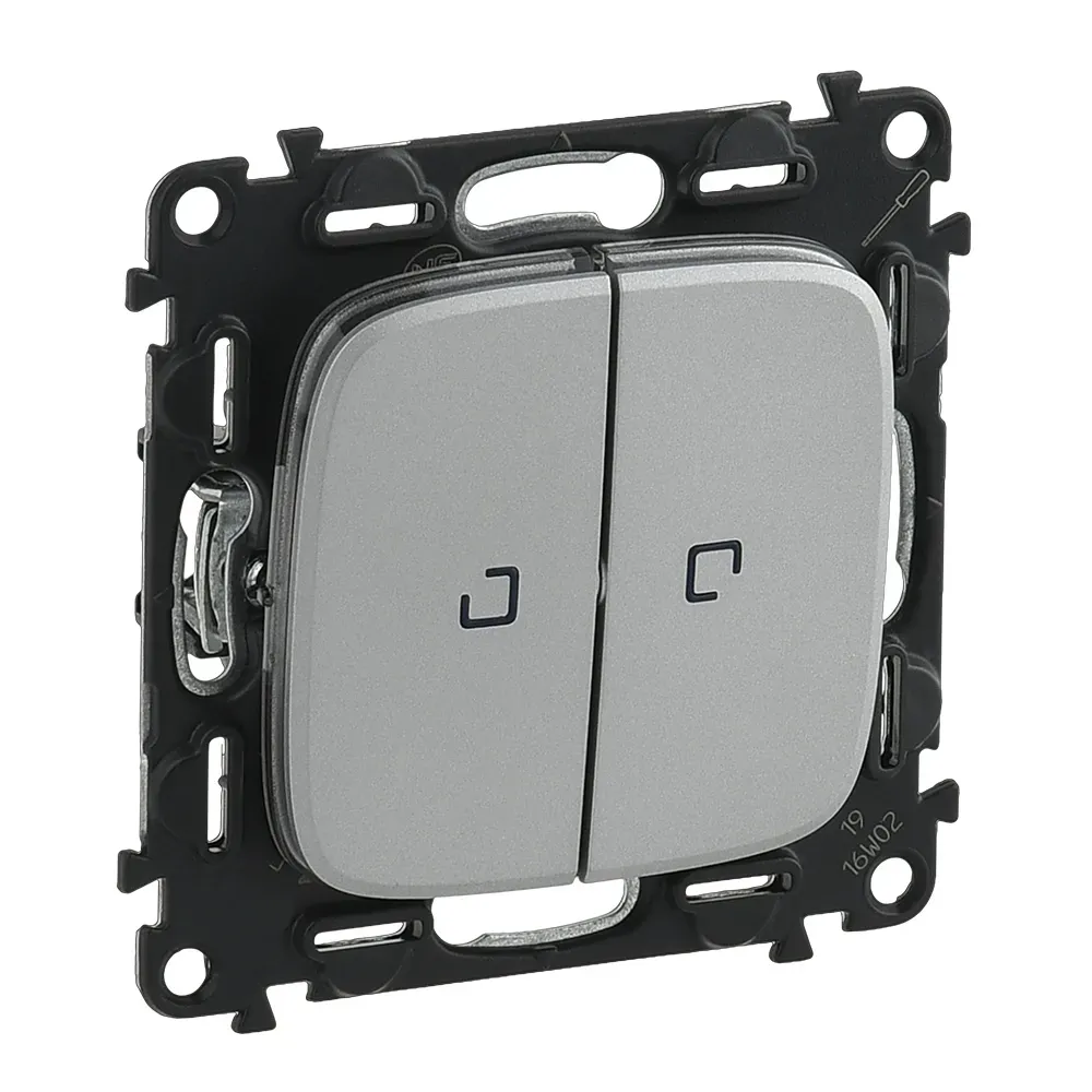 752908 Valena ALLURE. Переключатель двухклавишный 10А 250В с лицевой панелью. Безвинтовые зажимы. Алюминий Legrand