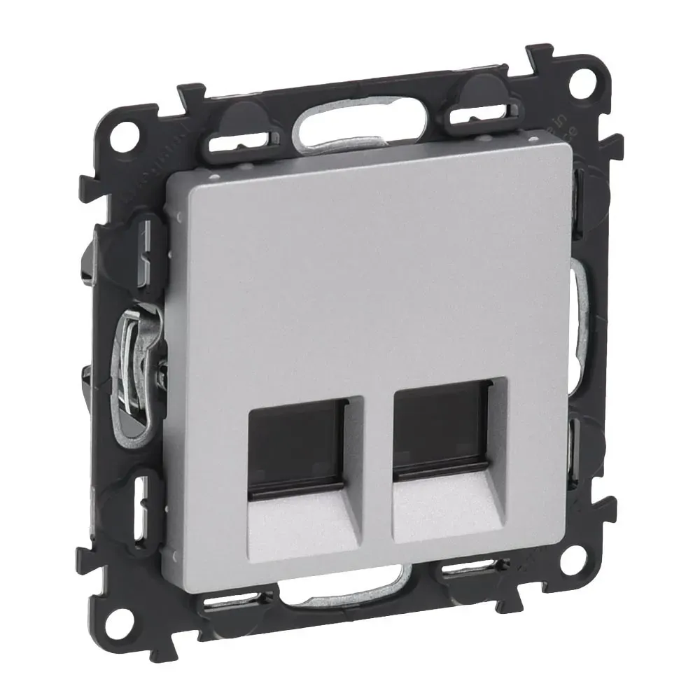 753641 Valena LIFE. Информационная розетка двойная RJ45 Кат. 5е UTP. С лицевой панелью. Алюминий Legrand