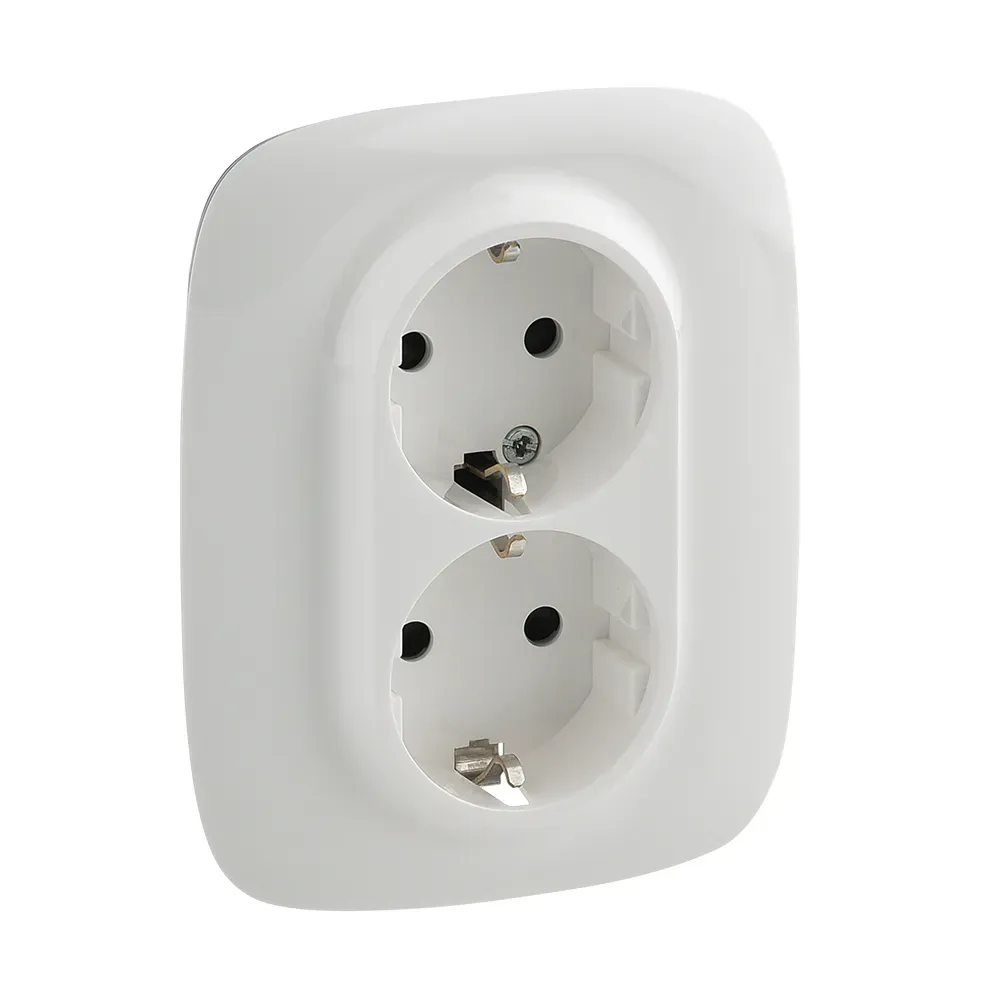 47292089 Двойная штепсельная розетка SCHUKO, цельная, полярная белизна, с блеском, с защитой от детей VDE 0620-1 R.1 Berker