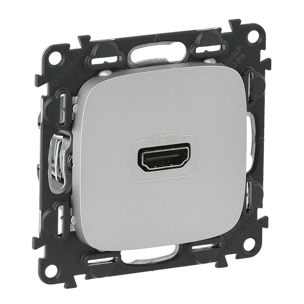 754717 Valena ALLURE. Розетка для аудио/видео устройств HDMI Тип А. С лицевой панелью. Алюминий Legrand