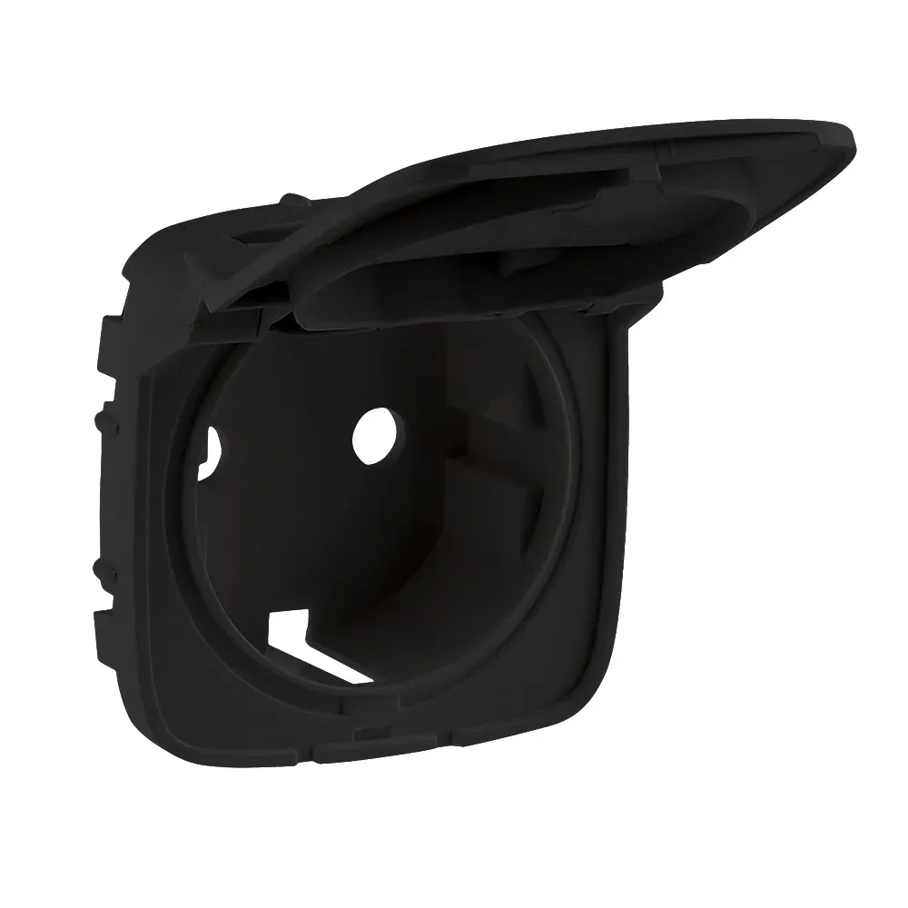 Розетка с заземлением и крышкой Legrand Valena Allure 16A/250В, безвинтовой зажим, матовый черный 753021+754848