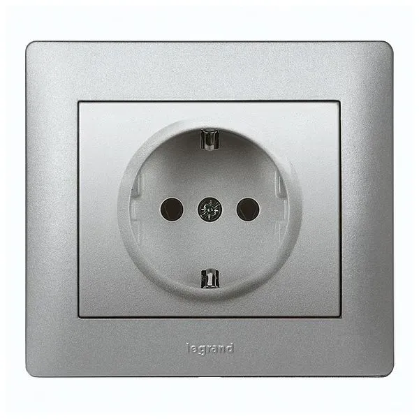 771364 Galea Life Розетка 2к+З с лицевой панелью с защитными штоками с крышкой, алюминий Legrand