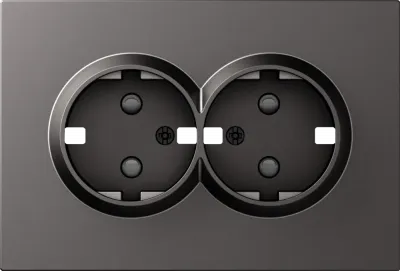 Розетка двойная с заземлением со шторками в сборе с рамкой 16А Donel A07 матовый титан DE22245+DB28800