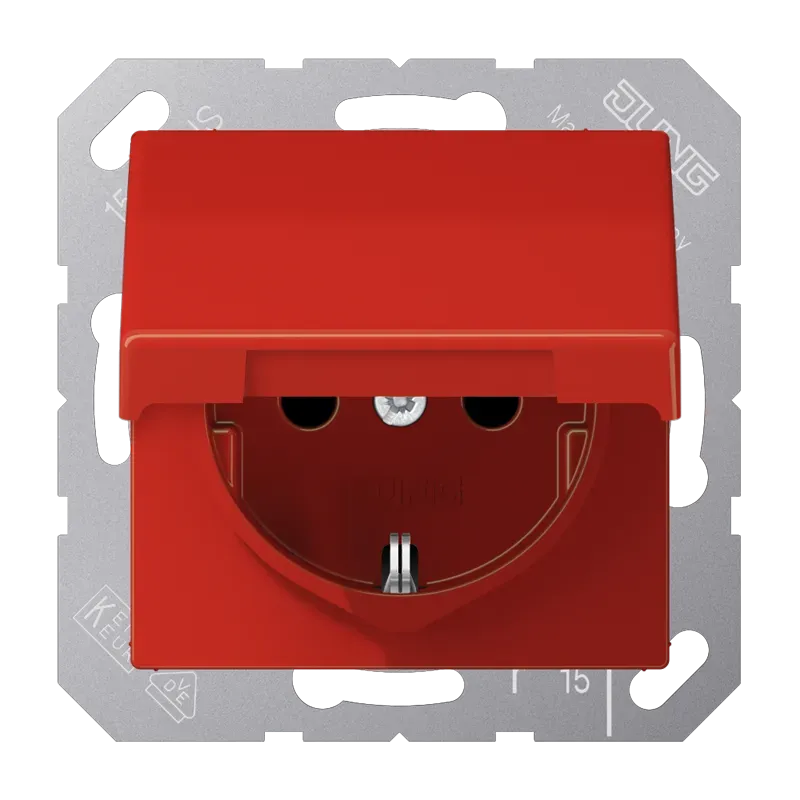A1520BFKLRT А серия Розетка с заземлением с откидной крышкой Jung 16А/250В Красная блестящая