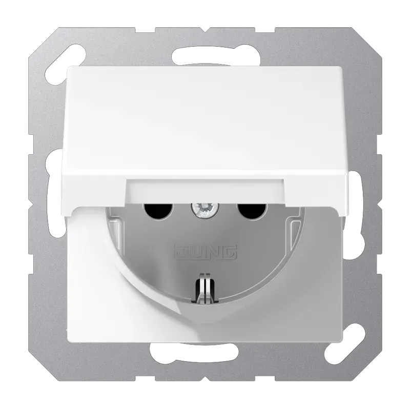 A591KLWW А серия Розетка с заземлением с откидной крышкой Jung 16А/250В Белый блестящий