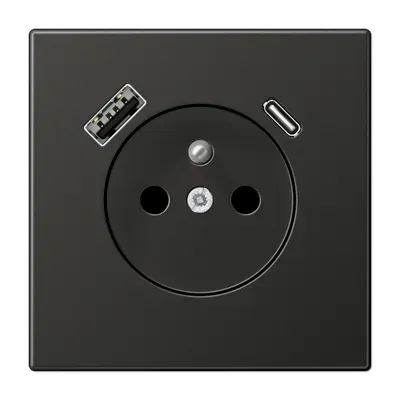 LS1520F-15CASWM матовый чёрный графит Розетка франко-бельгийской системы, 1 гнездо USB типа A и 1 гнездо USB типа C Jung LS серия
