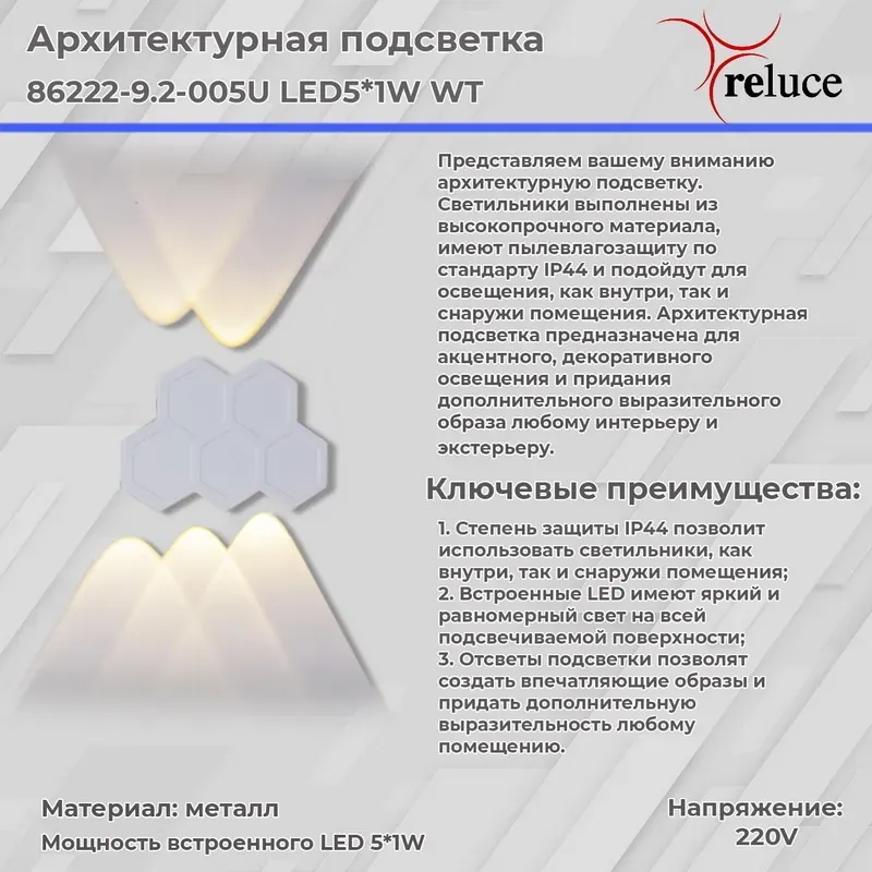Архитектурный светильник Reluce 86222-9.2-005U LED5*1W WT