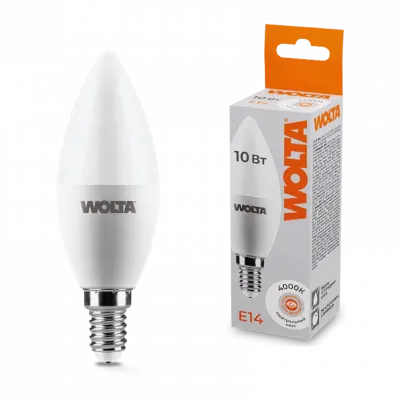 Светодиодная лампа WOLTA 10Вт 4000K E14 свеча матовая 25SC10E14