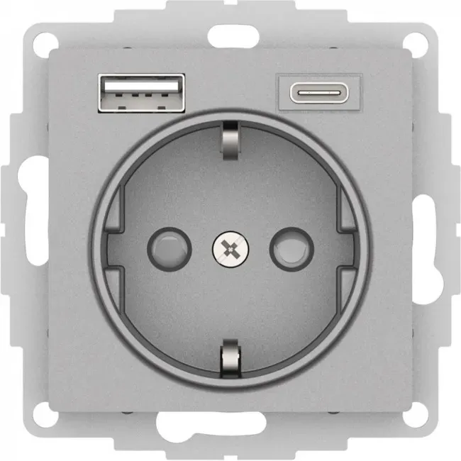 ATN000332 AtlasDesign РОЗЕТКА 16А c 2 USB A+C, 5В/2,4А/3,0А, 2х5В/1,5А, механизм, АЛЮМИНИЙ Schneider Electric