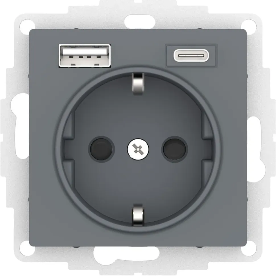 ATN000732 AtlasDesign РОЗЕТКА 16А c 2 USB A+C, 5В/2,4А/3,0А, 2х5В/1,5А, механизм, ГРИФЕЛЬ Schneider Electric