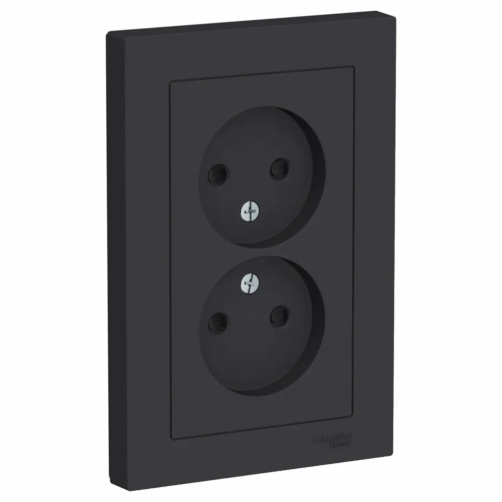 ATN001020 Atlasdesign Розетка двойная без заземления,16А, в сборе, Карбон Schneider Electric