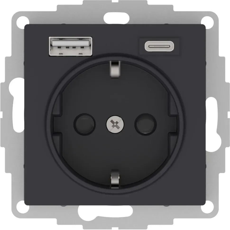 ATN001032 AtlasDesign РОЗЕТКА 16А c 2 USB A+С, 5В/2,4А/3,0А, 2х5В/1,5А, механизм, КАРБОН Schneider Electric