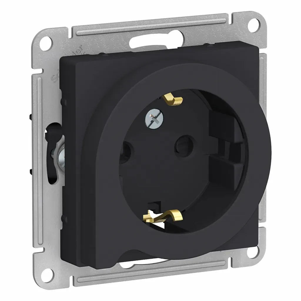 ATN001047 РОЗЕТКА AtlasDesign с заземлением со шторками с выталк., 16А, механизм, КАРБОН Schneider Electric