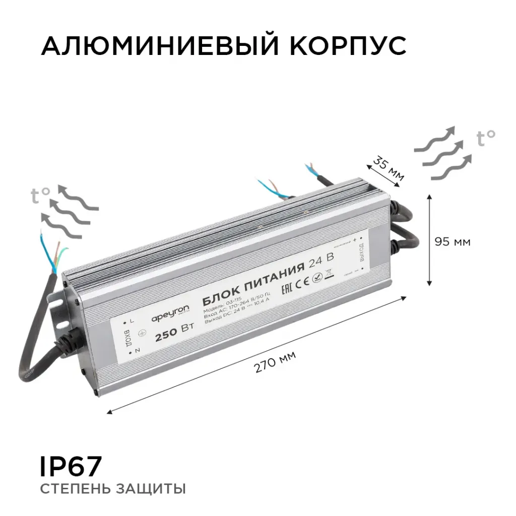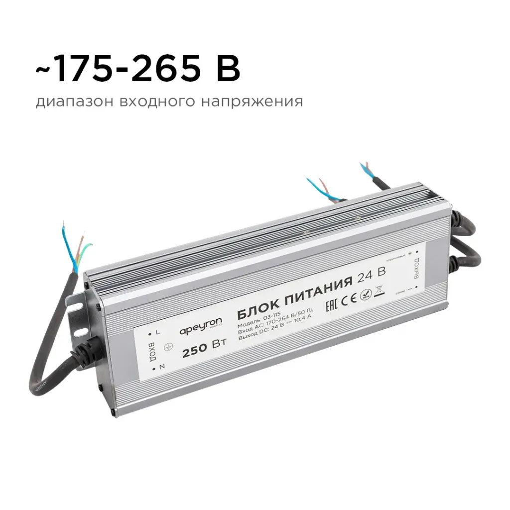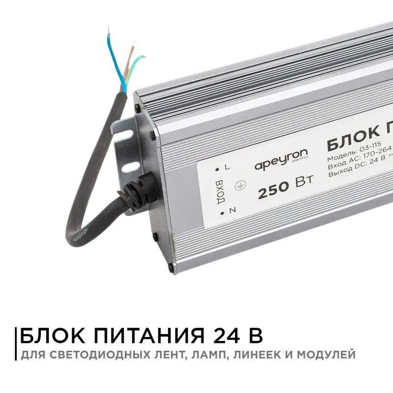 Блок питания Apeyron 24В 250Вт импульсный IP67 175-265В 10,4А 03-115