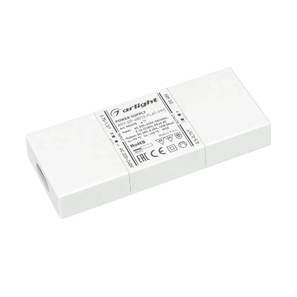 Блок питания Arlight ARV-SP-48012-FLAT-PFC (48V, 0.25A, 12W) 052078